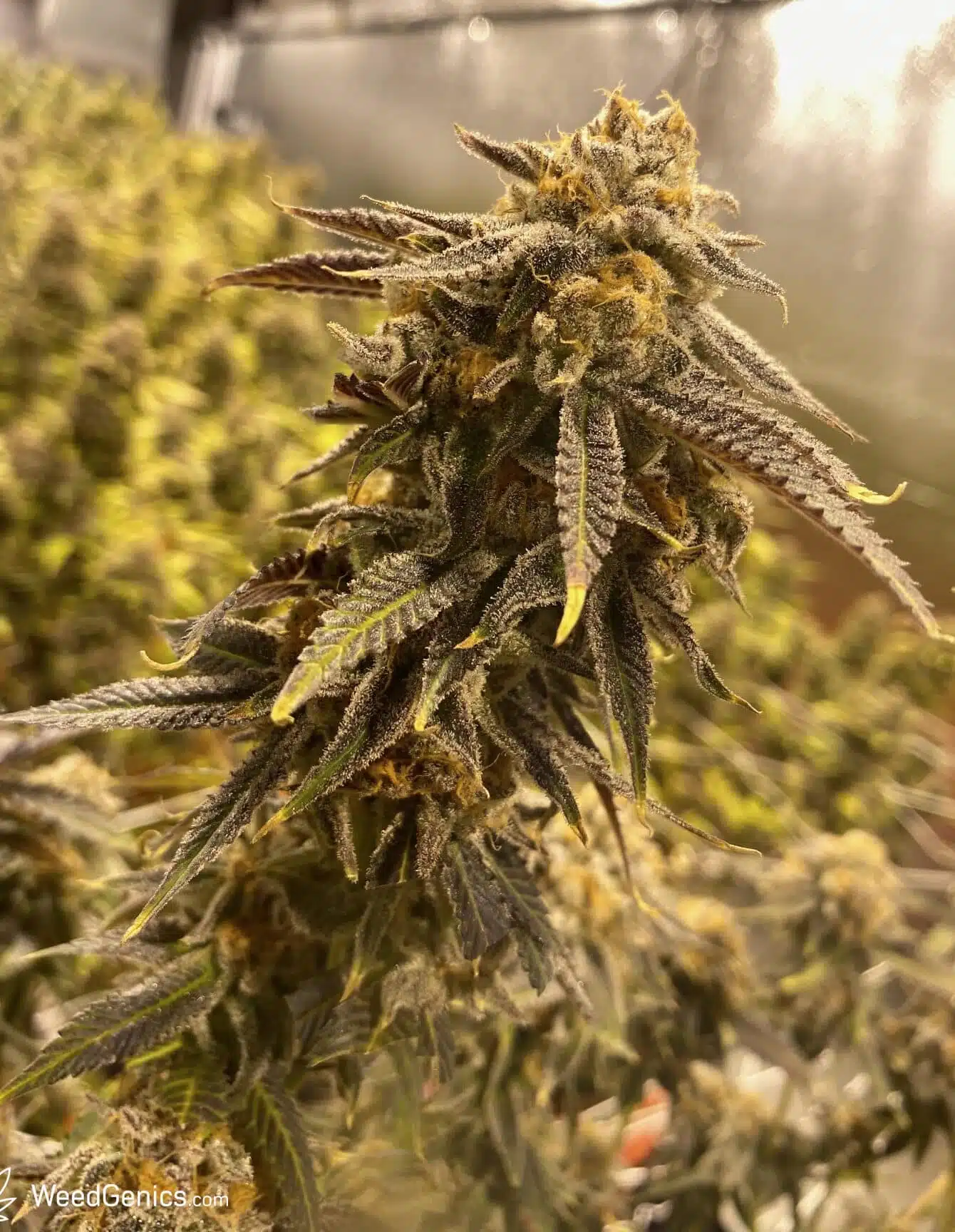X-Files strain has bright green leaves and light purple flowers. It has many trichomes and resin glands, which give them a resin-coated appearance. The plants also produce lots of sticky resin that coats the plant, making it look like it has been dipped in honey or ice cream!